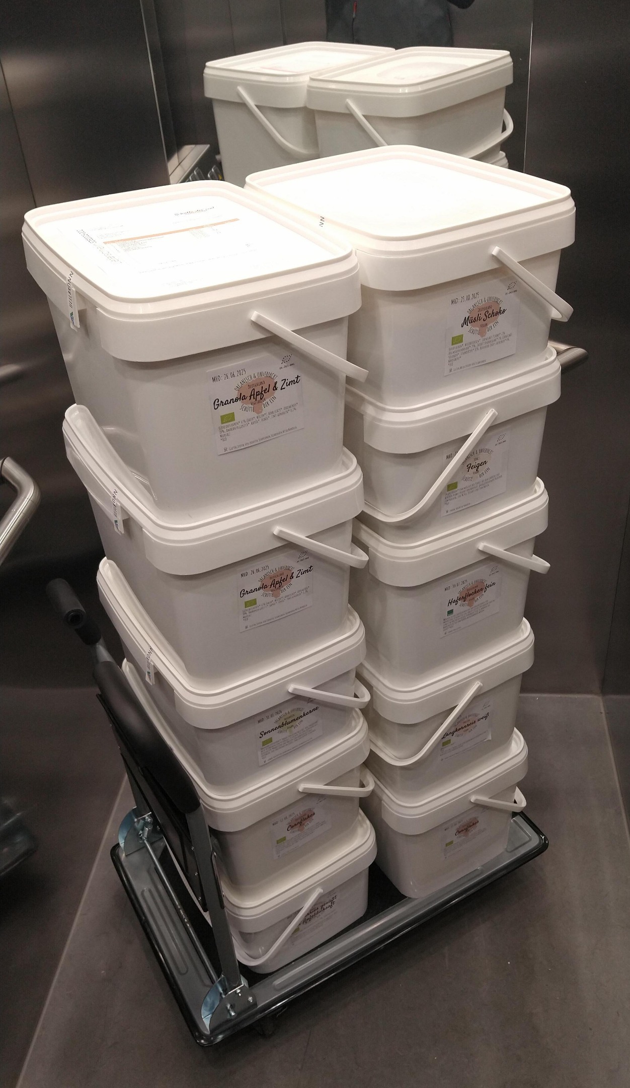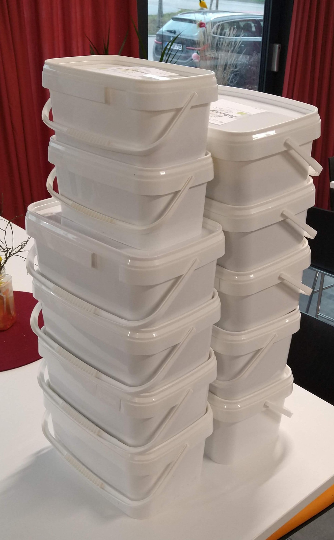 Die Ware liefern wir in lebensmittelechten, hermetisch verschlossenen, Schädling-sicheren Mehrweg-Eimern. Bei der nächsten Lieferung holen wir die leeren Eimer dann wieder ab.